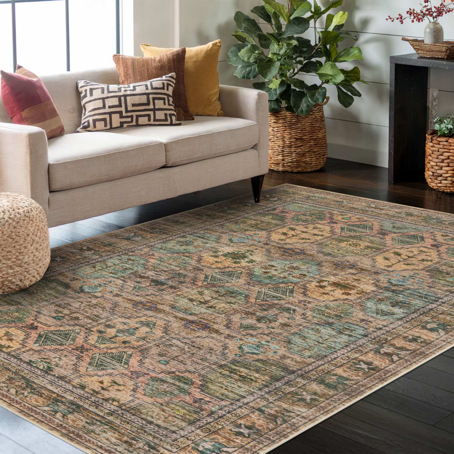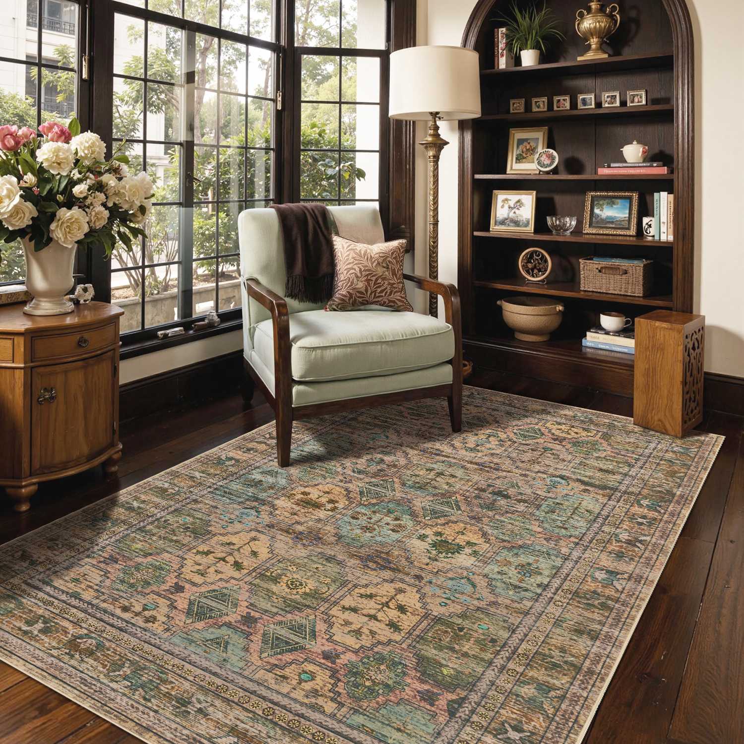 Washable Non-Slip Area Rug for Living Room, Office, Dining Room.Farmhouse,Vintage Boho Rugs