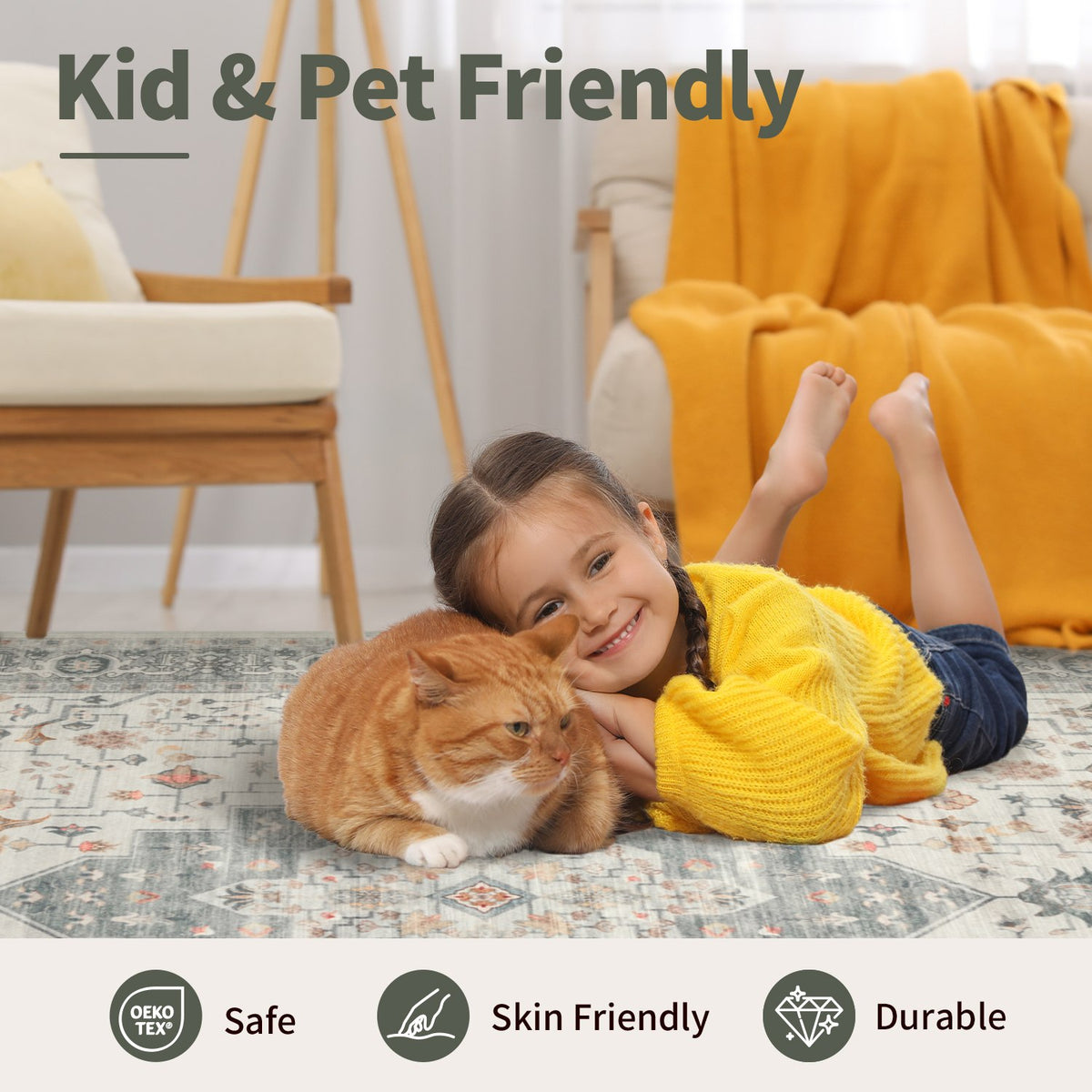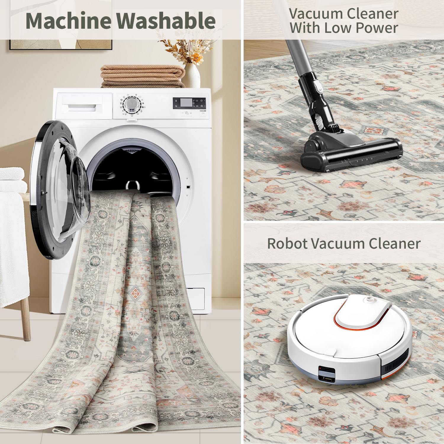Washable Non-Slip Area Rug for Living Room, Office, Dining Room.Farmhouse,Vintage Boho Rugs