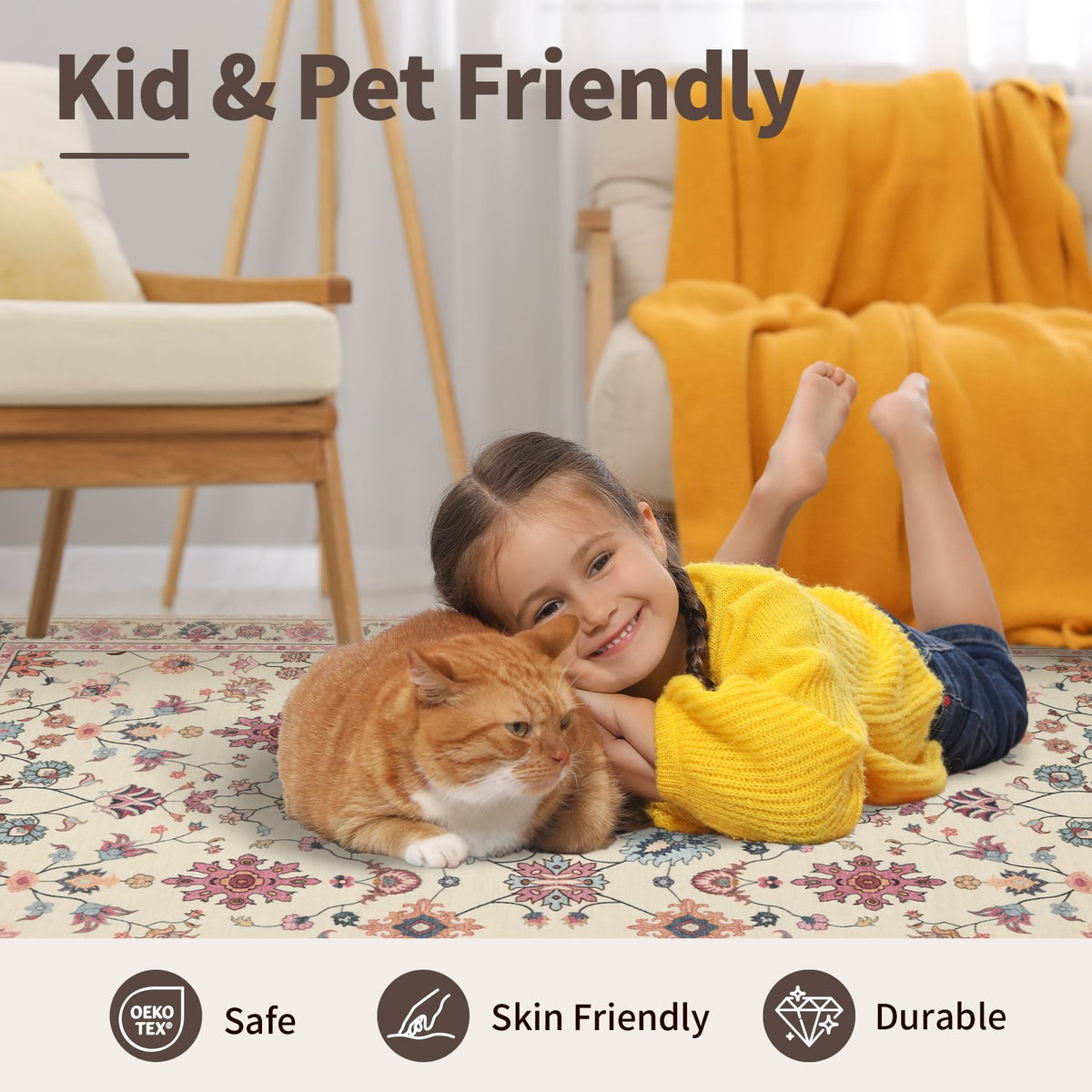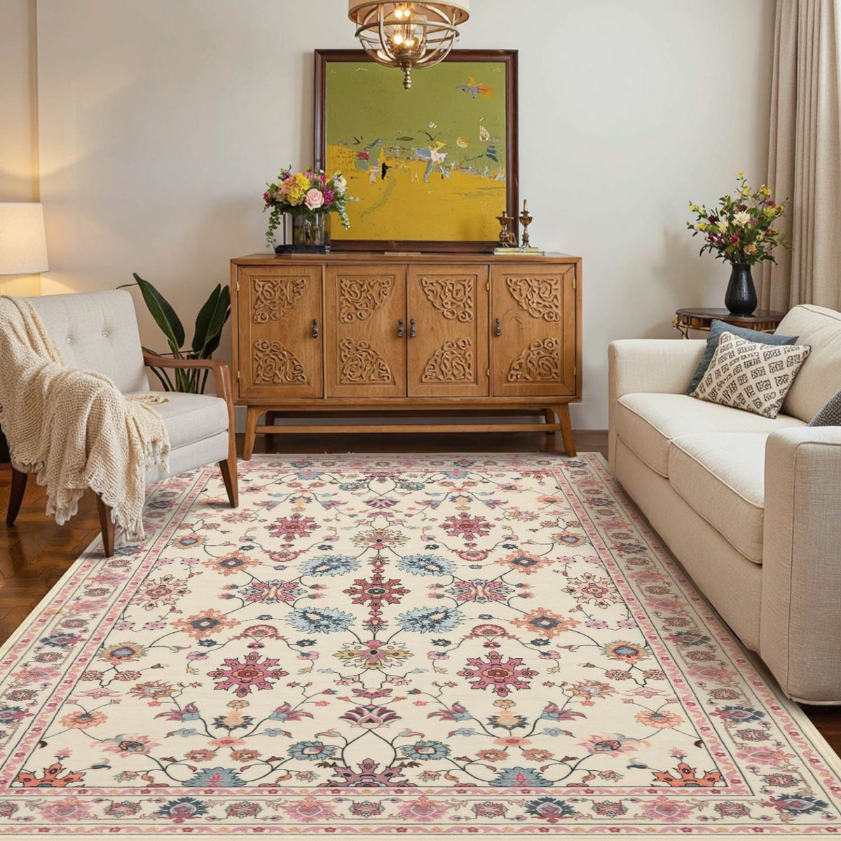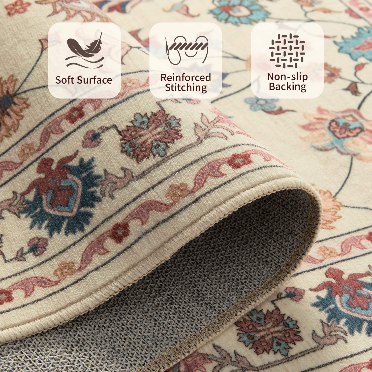 Washable Non-Slip Area Rug for Living Room, Office, Dining Room.Farmhouse,Vintage Boho Rugs