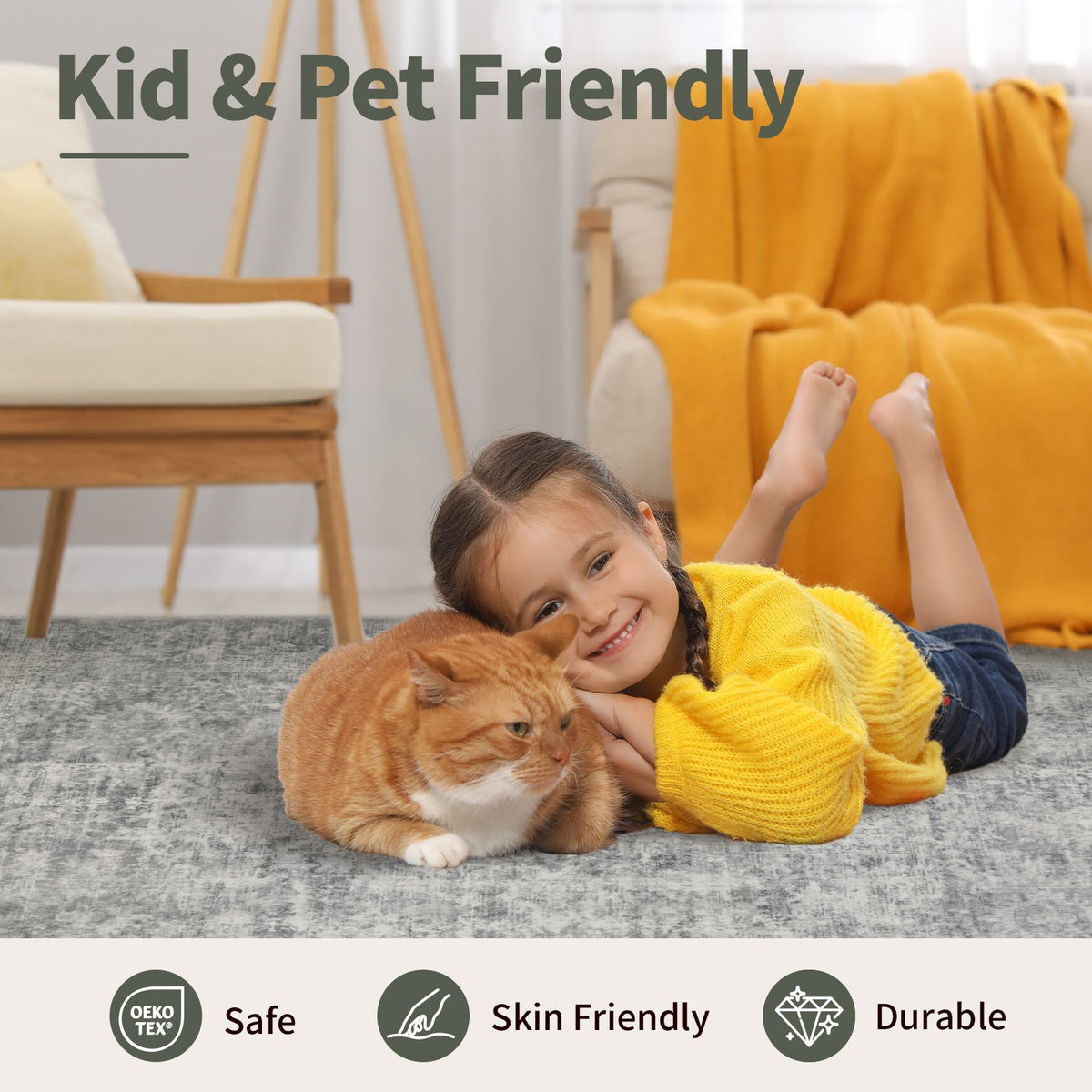 Every Rugxara rug combines exclusive designs with revolutionary washability - even our 9'x12' sizes fit standard machines. The integrated non-slip backing ensures safety, while our certified non-toxic materials withstand pets and children's daily adventures. Experience designer durability that simplifies your life.