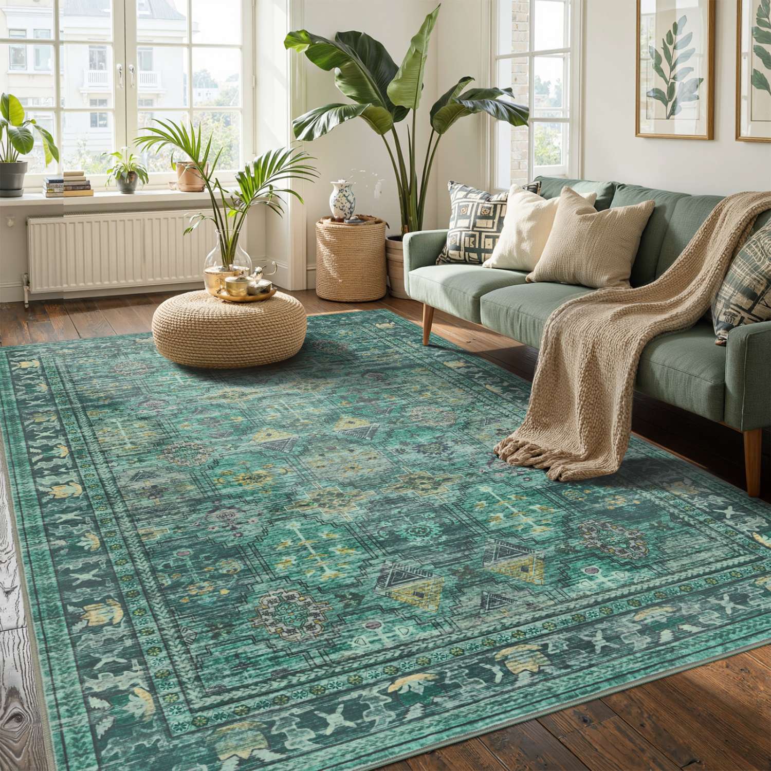 Washable Non-Slip Area Rug for Living Room, Office, Dining Room.Farmhouse,Vintage Boho Rugs