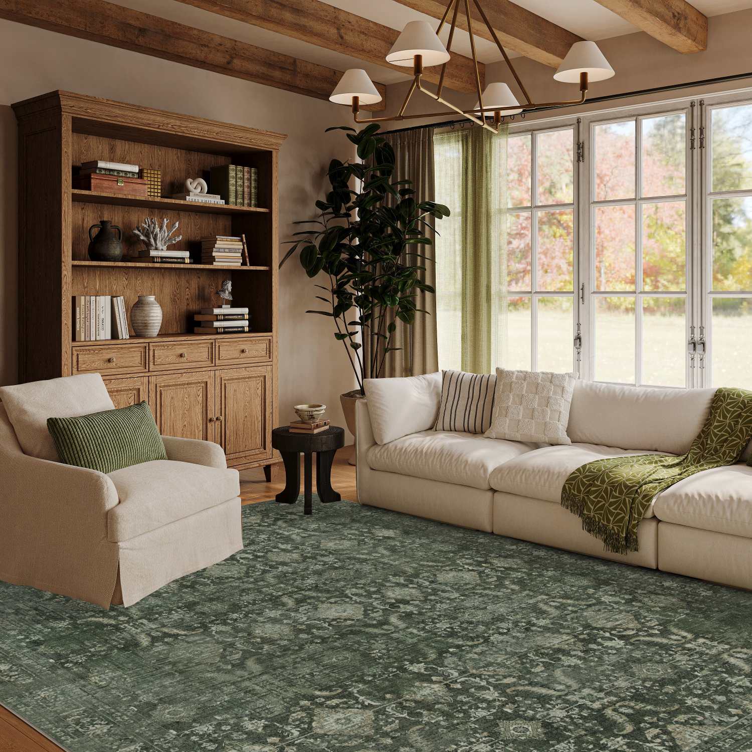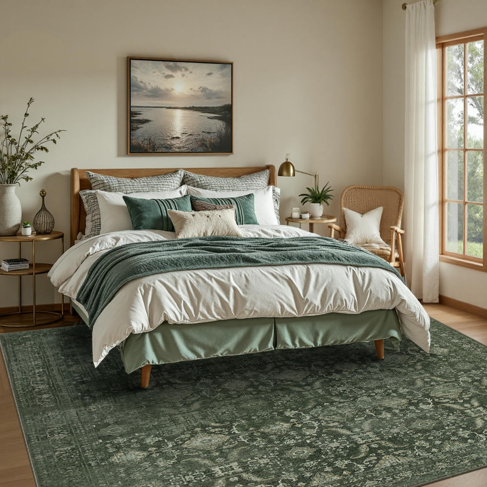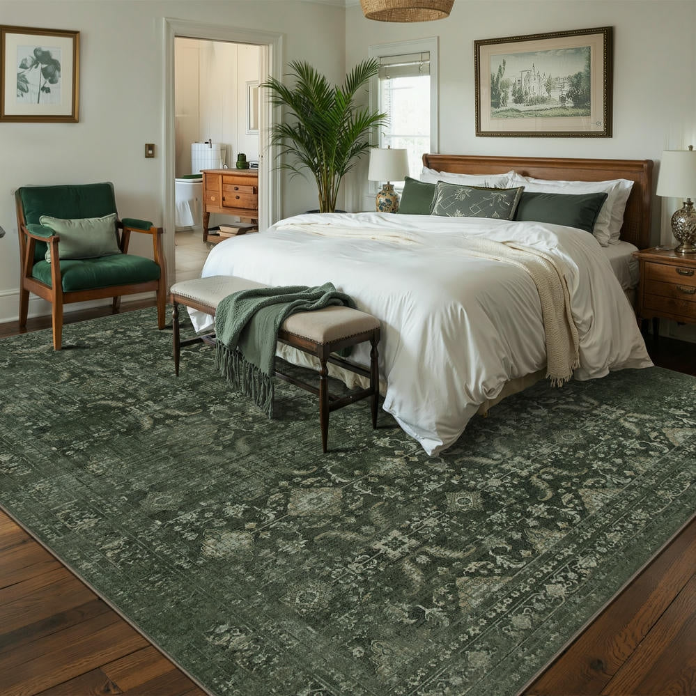 Rugxara Washable Area Rug for Living Room, Bedroom ,Vintage Neutral Boho Rugs for Office, Dining Room, Kids Room, Farmhouse, Durable Low Pile Non Slip Carpet for High Traffic Areas