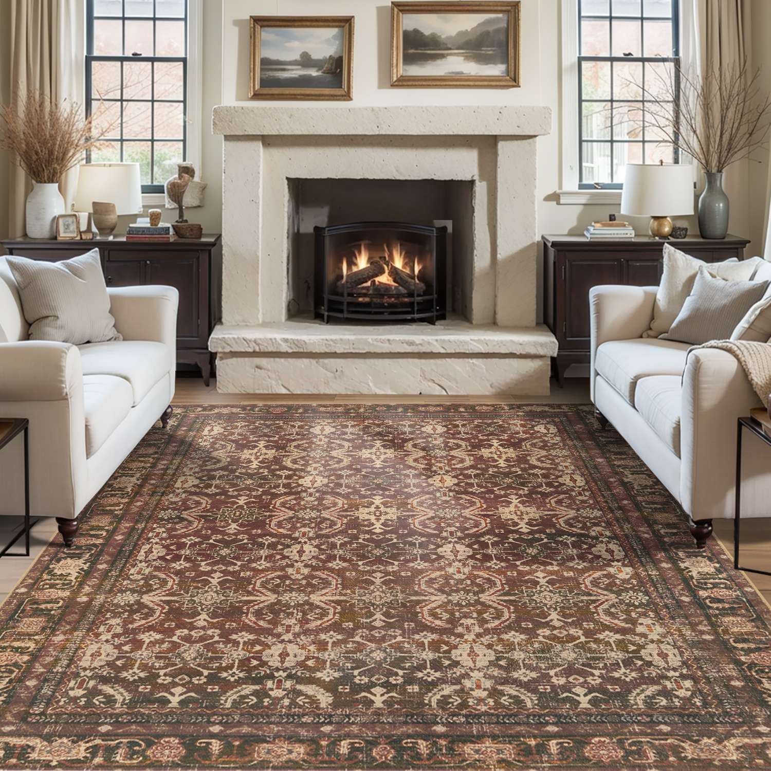 Washable Non-Slip Area Rug for Living Room, Office, Dining Room.Farmhouse,Vintage Boho Rugs