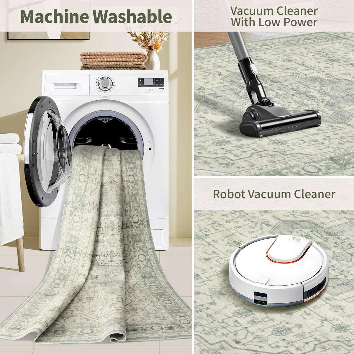 Our soft, washable rugs are crafted to simplify your life, offering effortless care and maintenance: