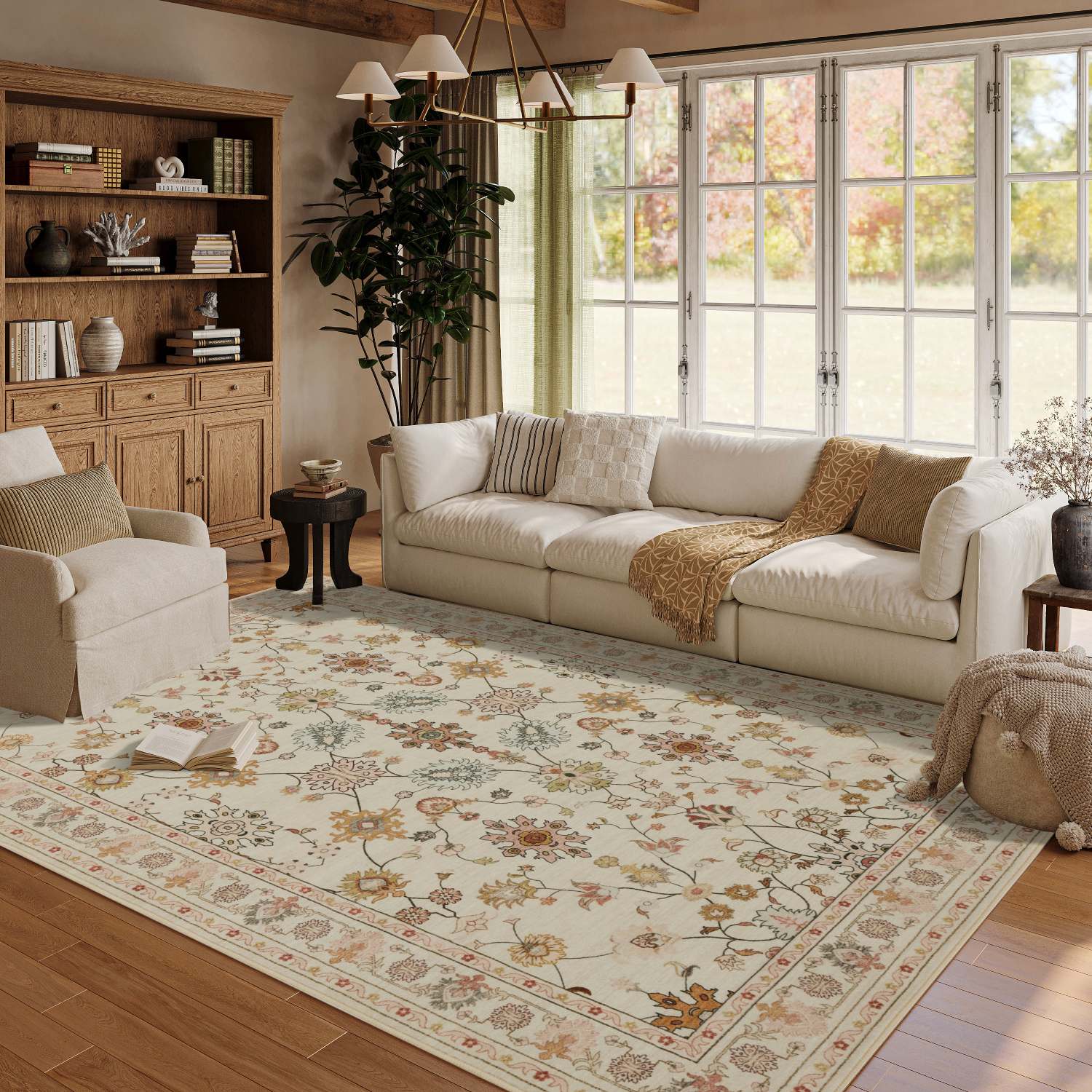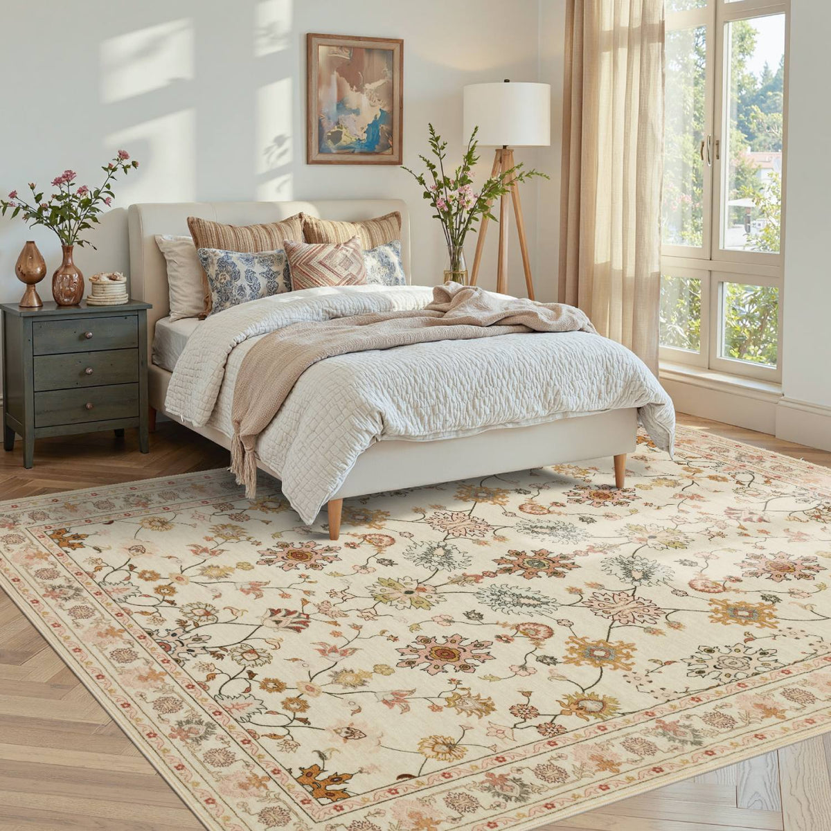 Washable Non-Slip Area Rug for Living Room, Office, Dining Room.Farmhouse,Vintage Boho Rugs