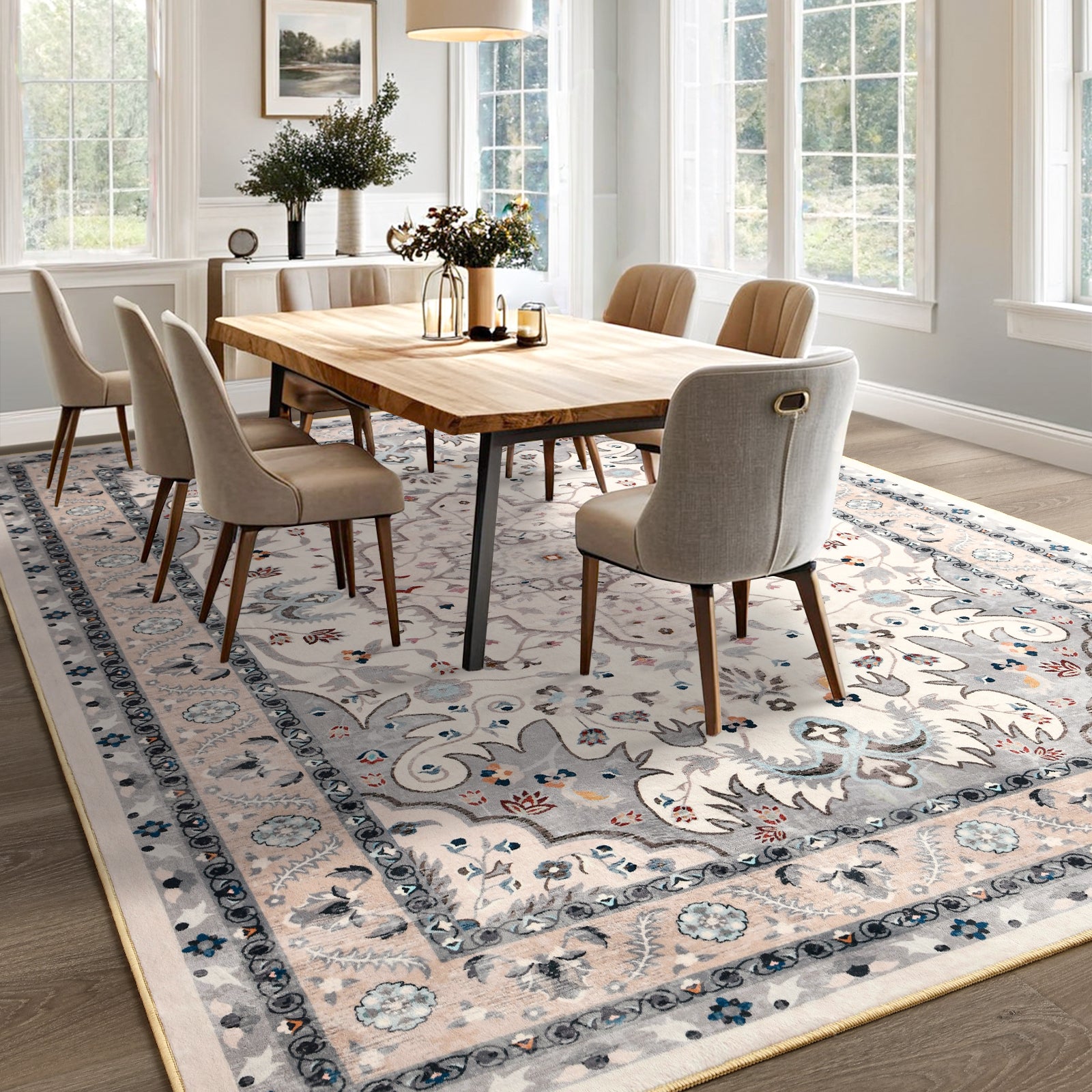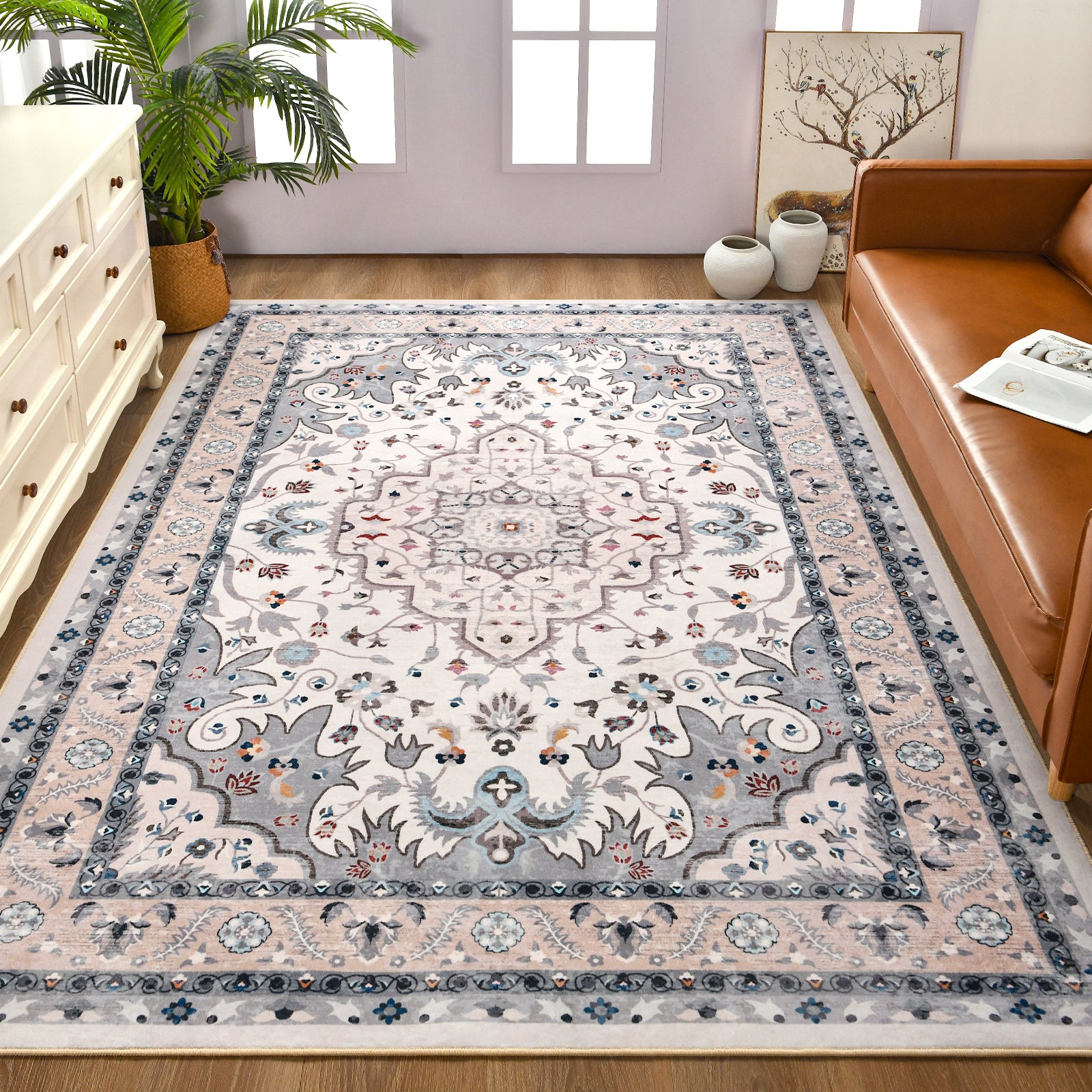 Washable Non-Slip Area Rug for Living Room, Office, Dining Room.Farmhouse,Vintage Boho Rugs