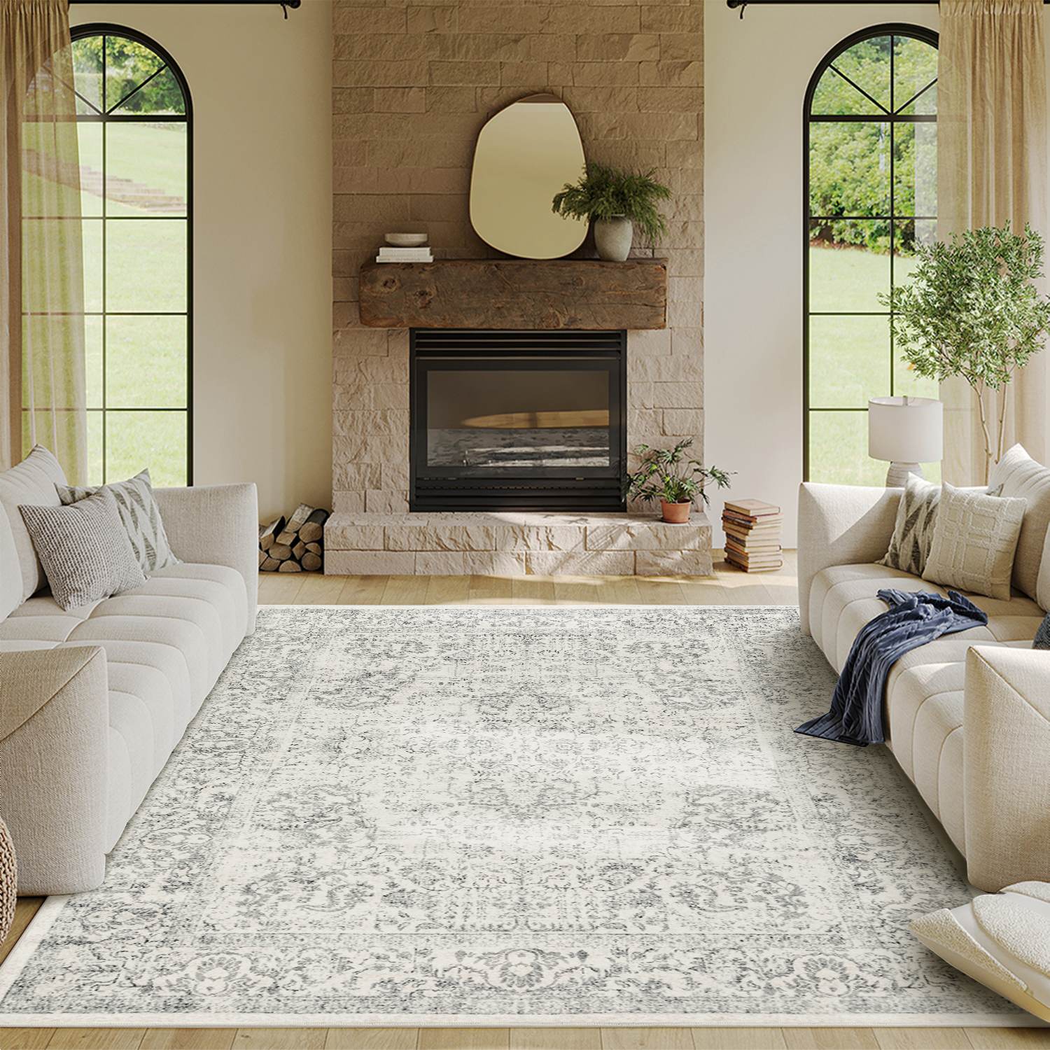 Washable Non-Slip Area Rug for Living Room, Office, Dining Room.Farmhouse,Vintage Boho Rugs
