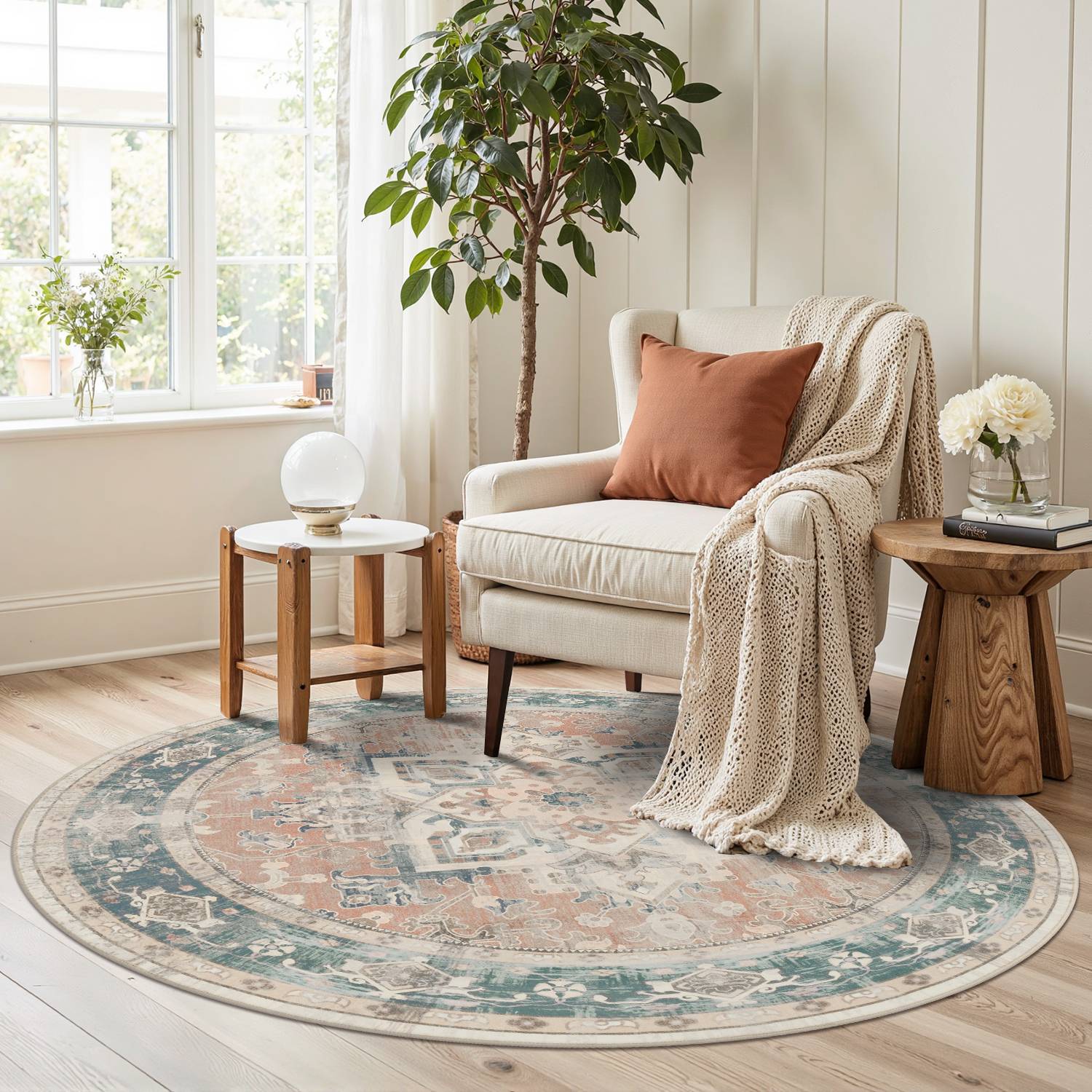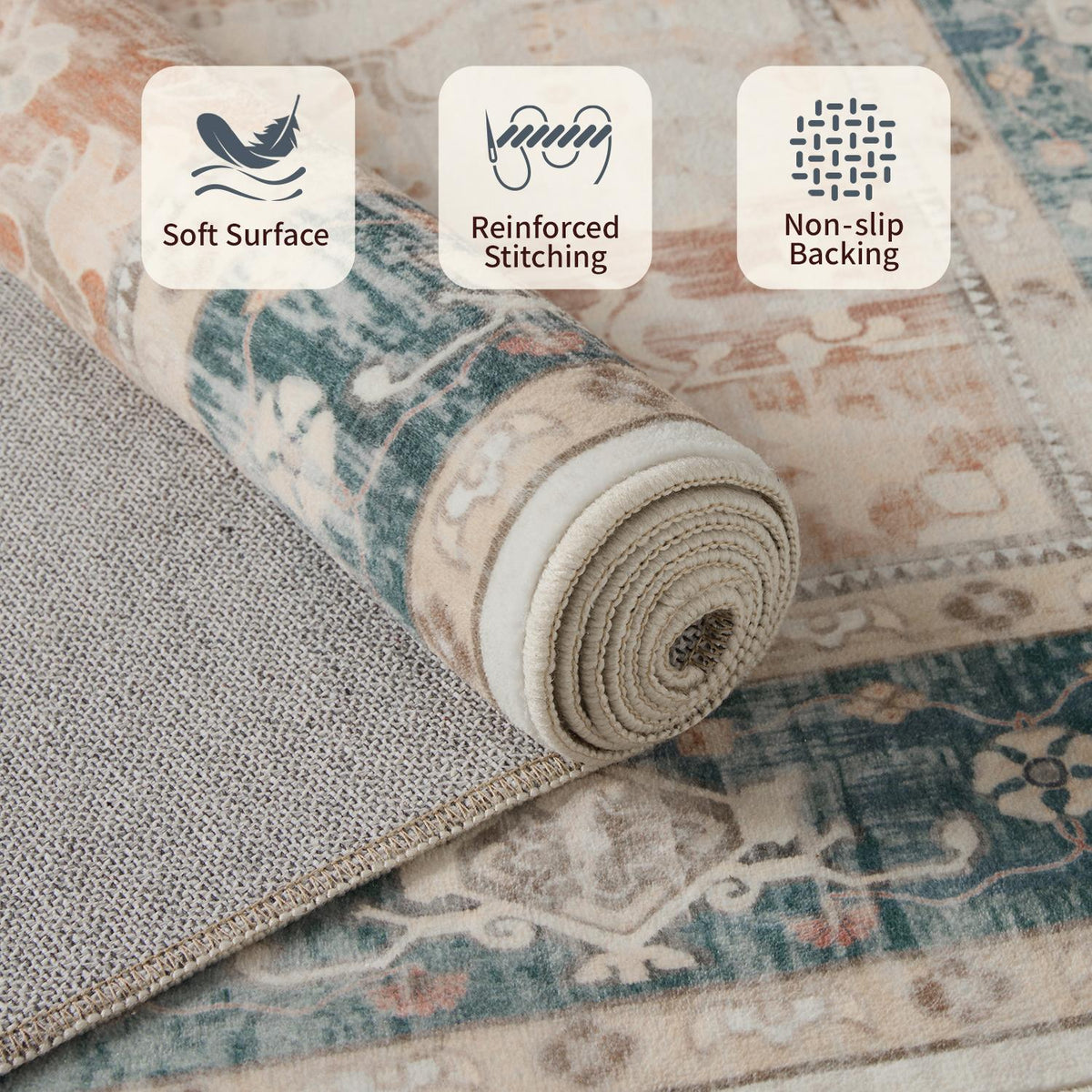Washable Non-Slip Area Rug for Living Room, Office, Dining Room.Farmhouse,Vintage Boho Rugs