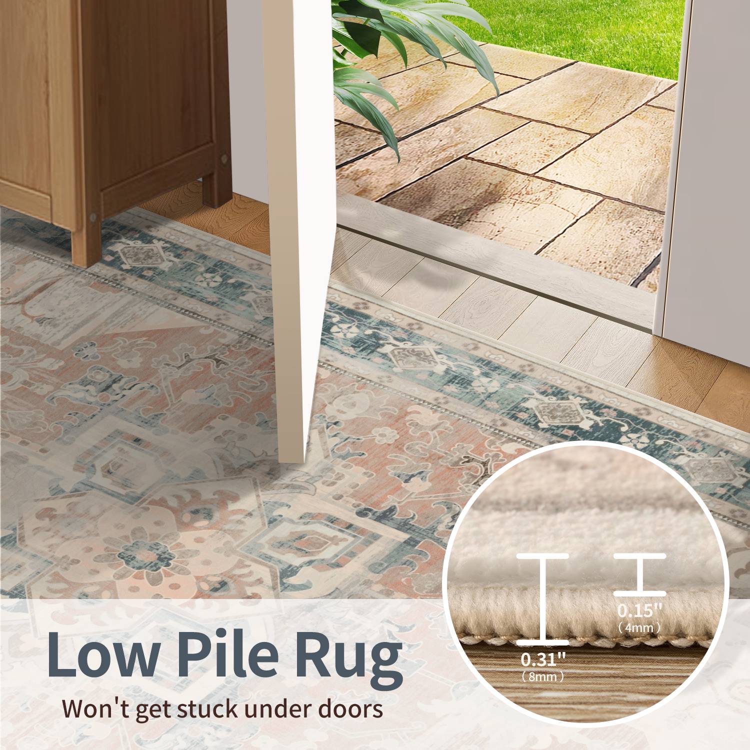 Washable Non-Slip Area Rug for Living Room, Office, Dining Room.Farmhouse,Vintage Boho Rugs