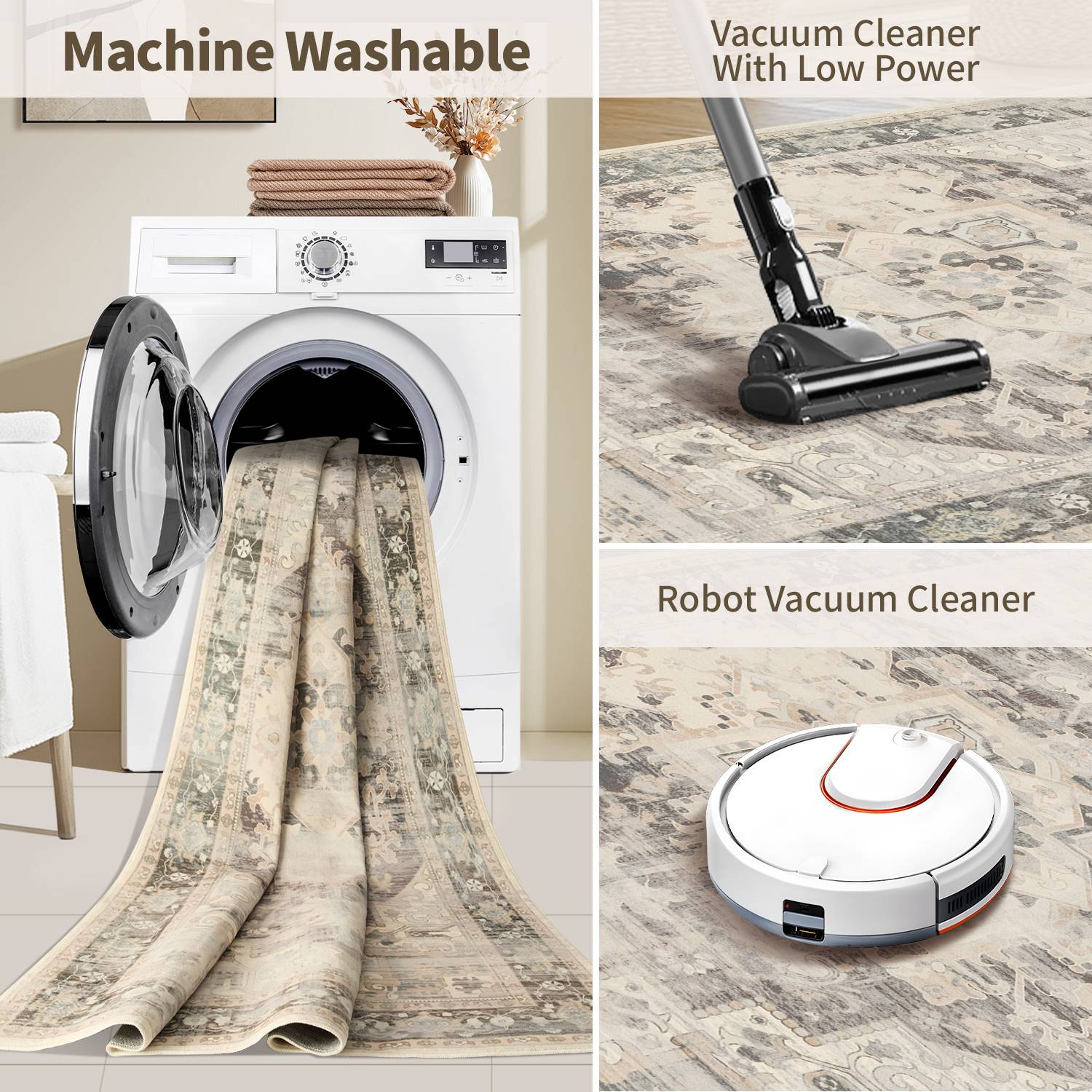 Our soft, washable rugs are crafted to simplify your life, offering effortless care and maintenance: