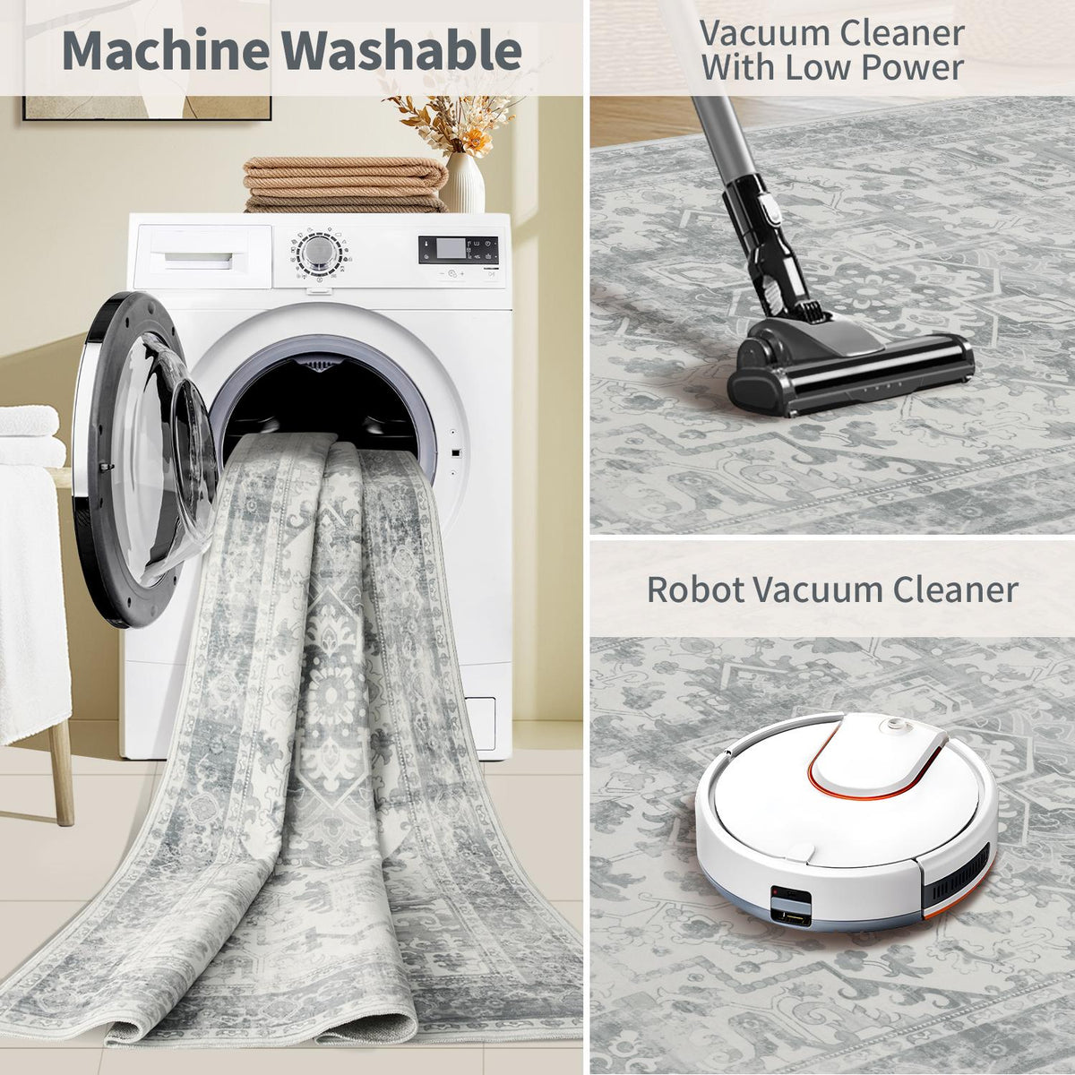 Our soft, washable rugs are crafted to simplify your life, offering effortless care and maintenance: