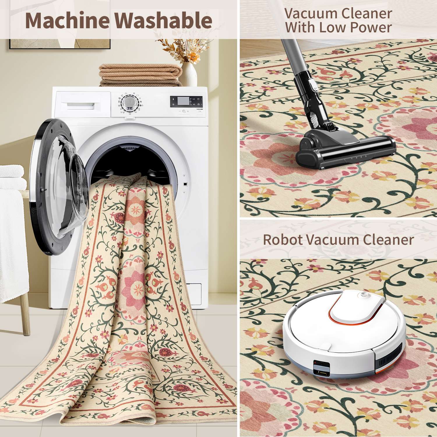 Our soft, washable rugs are crafted to simplify your life, offering effortless care and maintenance: