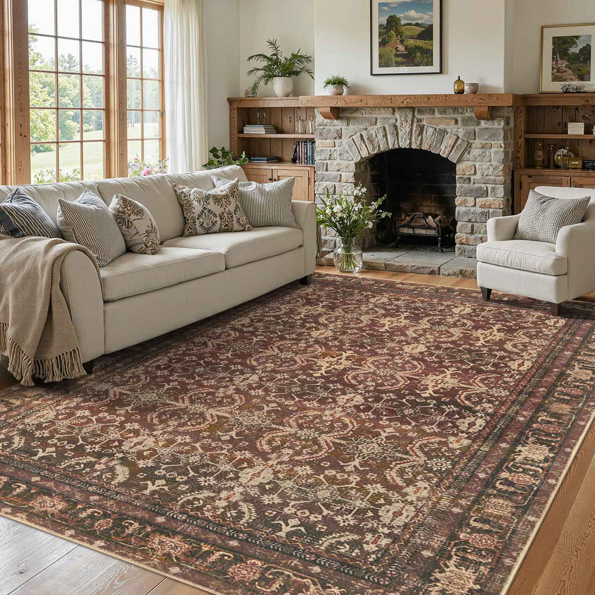 Washable Non-Slip Area Rug for Living Room, Office, Dining Room.Farmhouse,Vintage Boho Rugs