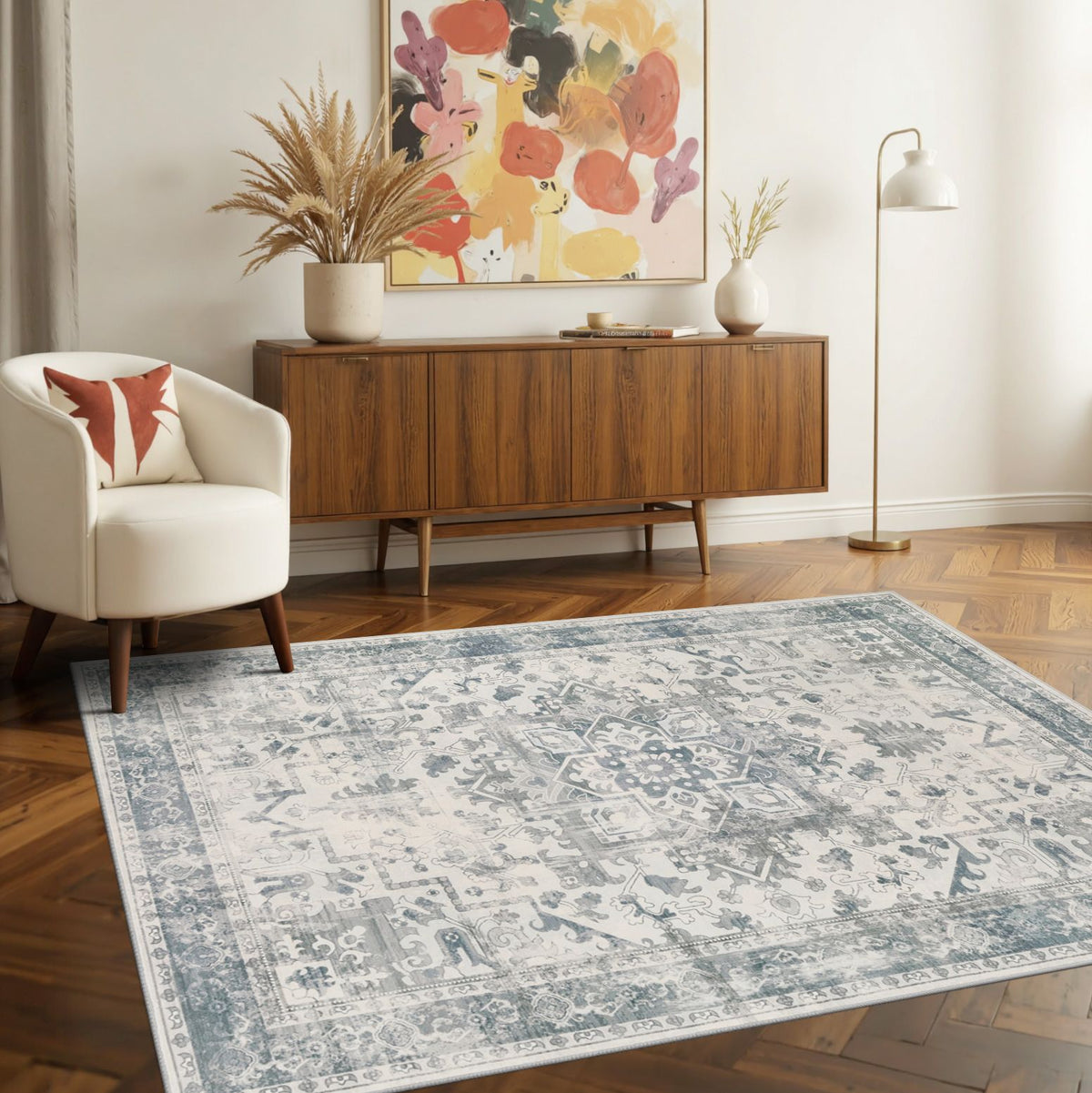 Washable Non-Slip Area Rug for Living Room, Office, Dining Room.Farmhouse,Vintage Boho Rugs