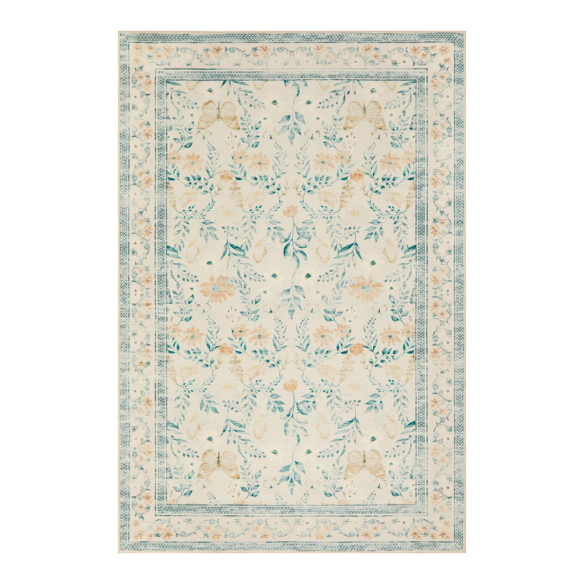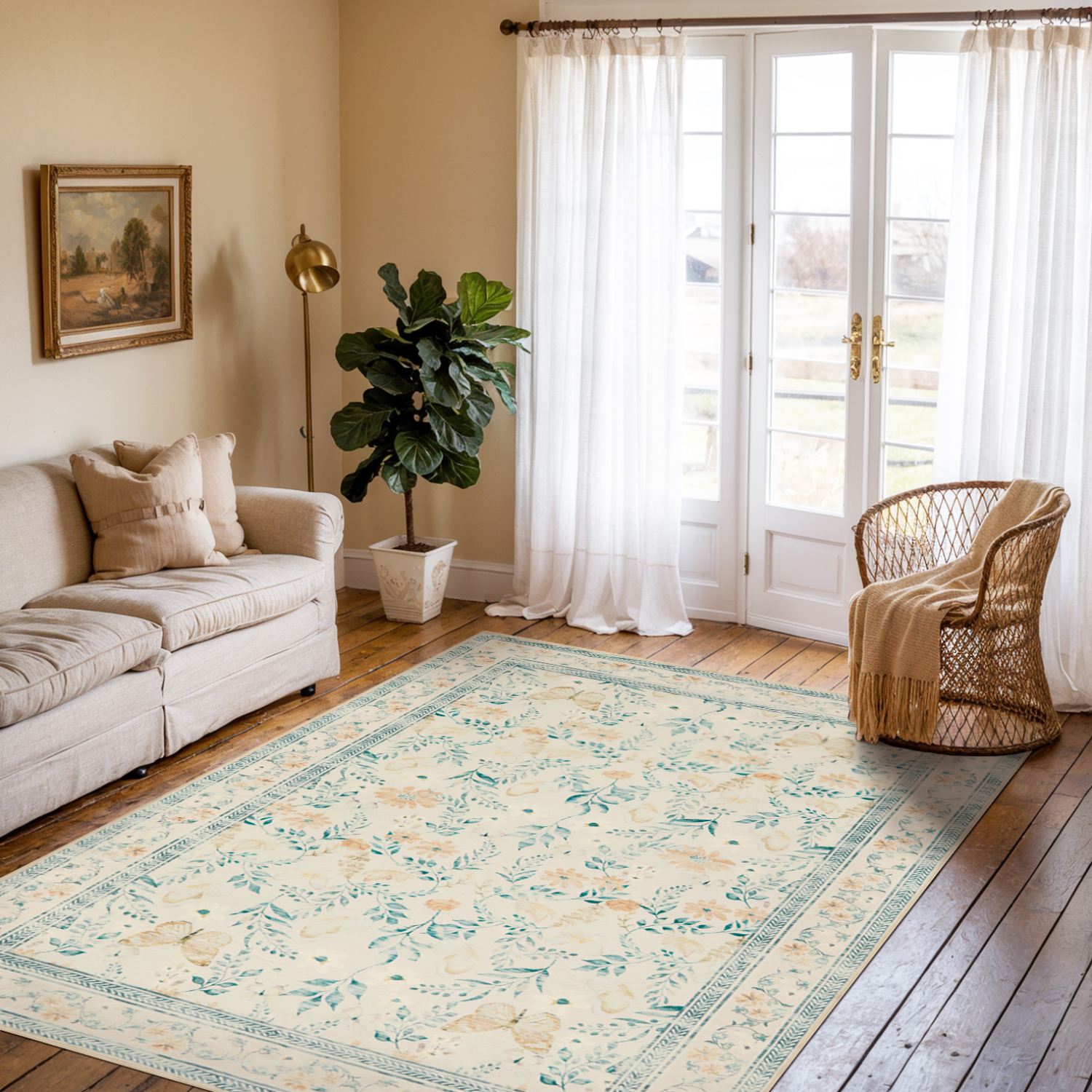 Leaf and Butterfly Dance-Ivory Floral Green(4'x6')