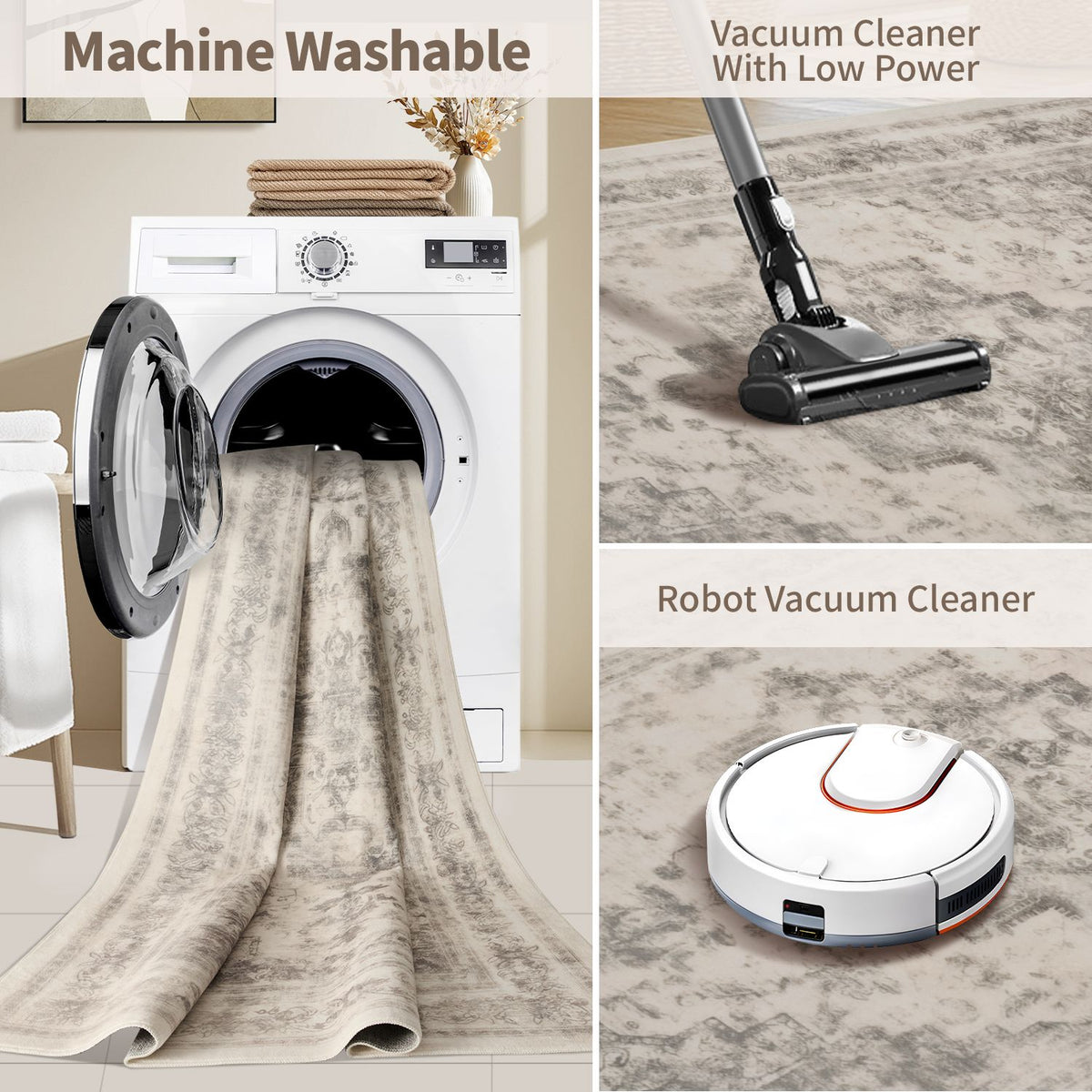 Our soft, washable rugs are crafted to simplify your life, offering effortless care and maintenance: