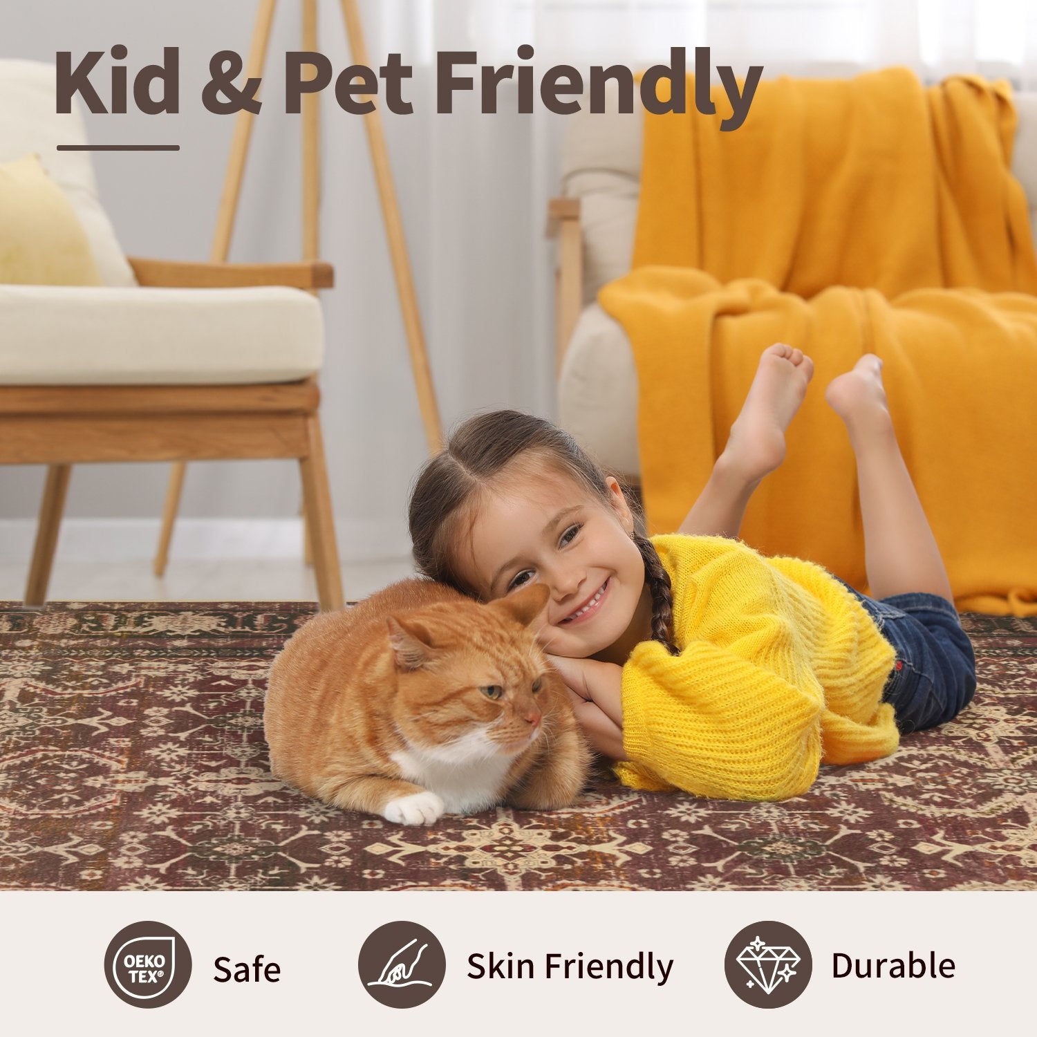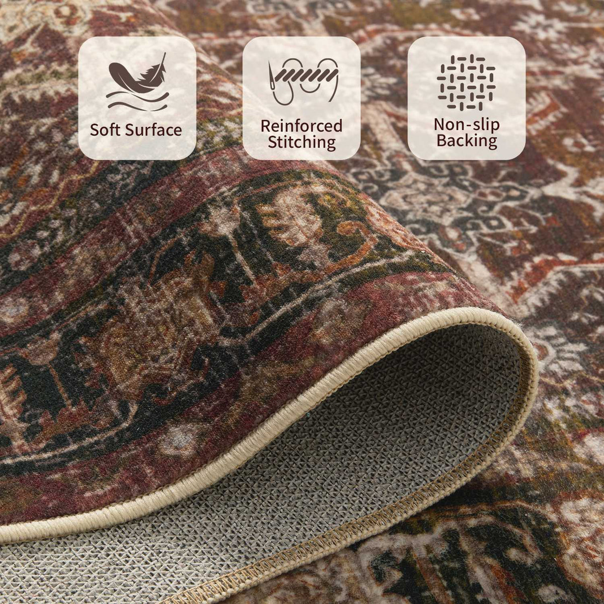 Washable Non-Slip Area Rug for Living Room, Office, Dining Room.Farmhouse,Vintage Boho Rugs