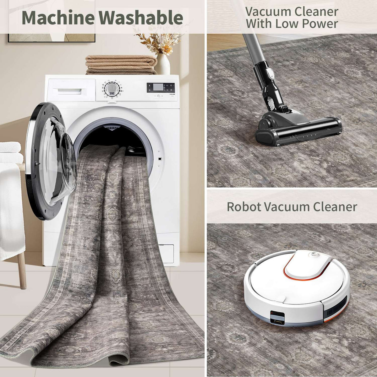 Our soft, washable rugs are crafted to simplify your life, offering effortless care and maintenance: